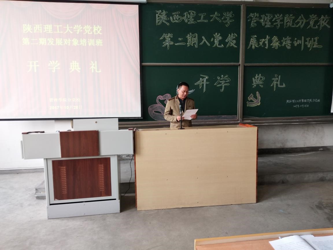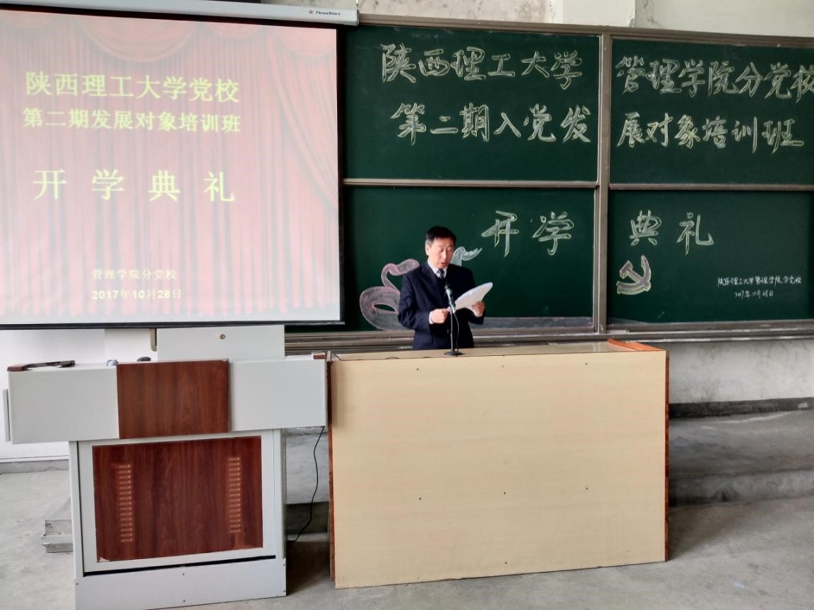 10月28日上午,由管理学院分党校承办的陕西理工大学第二期发展对象培训班开学典礼在9A120教室隆重举行。党委组织部副部长路爱东、数计学院党委书记薛建祥、管理学院党委副书记辜天琪、材料学院党委副书记陈峰、数计学院学办主任韩学山以及分党校班主任张晓阳和近200名培训学员参加了开学典礼。典礼由管理学院学办主任原媛老师主持。
