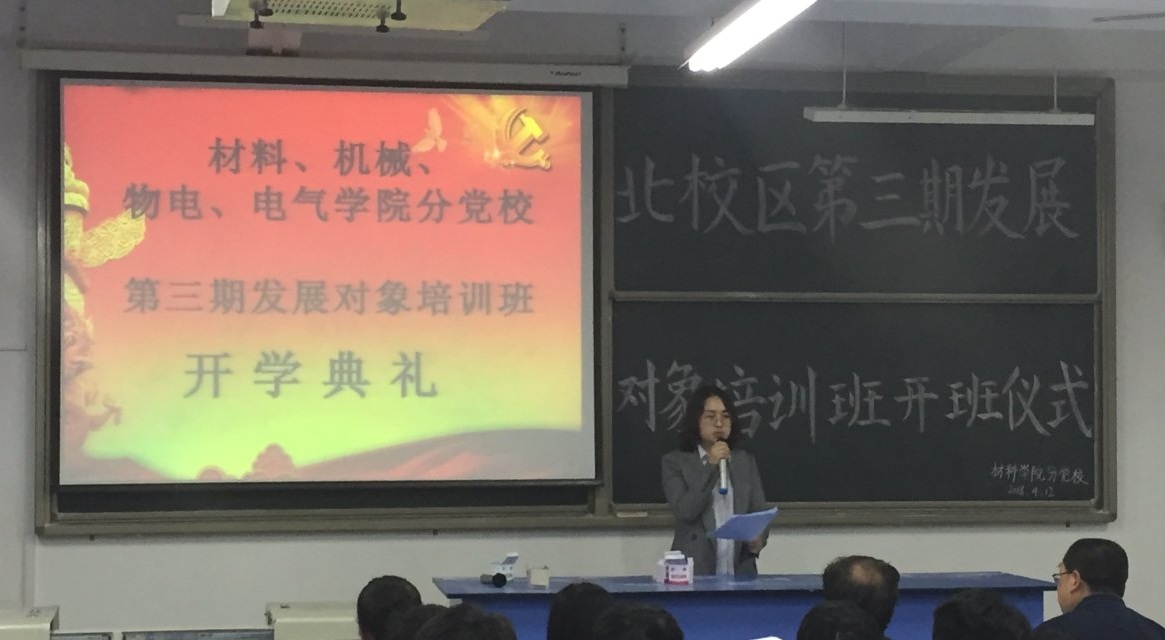 4月12日下午,陕西理工大学材料学院分党校承办的第3期发展对象培训班(北区)开学典礼在北区803-303教室隆重举行。