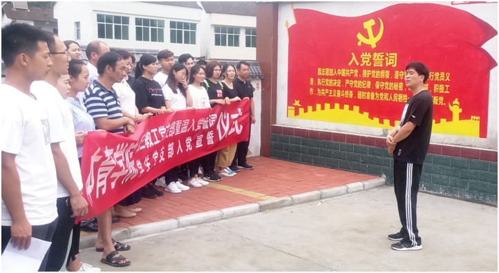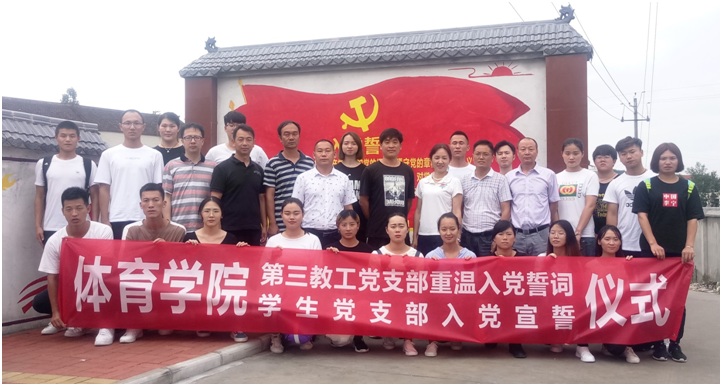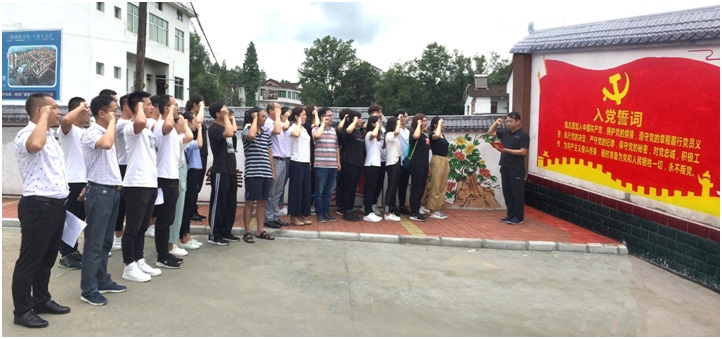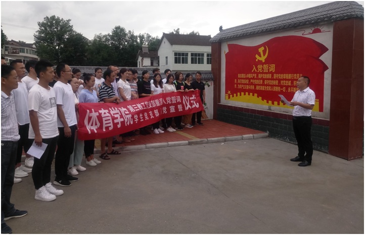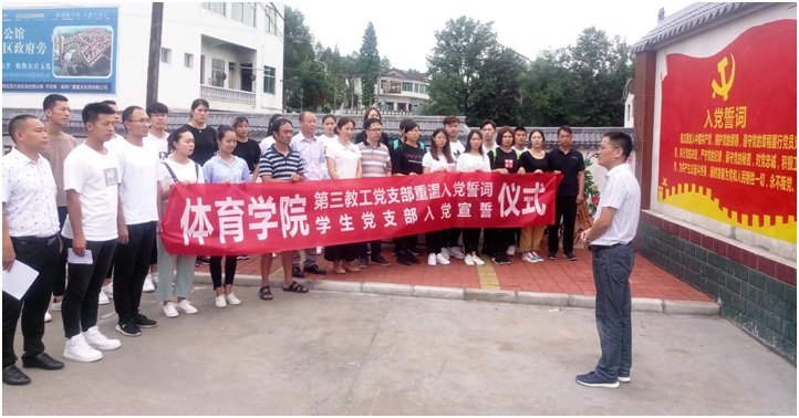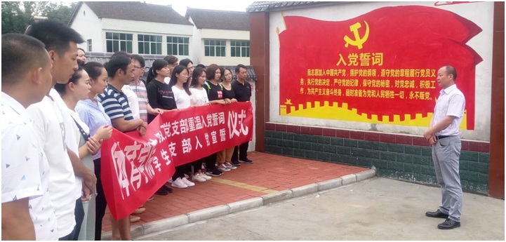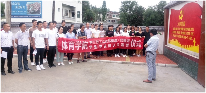 根据陕西理工大学党发[2018]13文件《关于开展纪念建党97周年活动的通知》精神,体育学院着力组织开展了“牢记时代使命”主题党日活动,并结合当前全面建成小康社会的伟大历史进程这一时代背景,组织三个学生党支部25名新发展的预备党员在陕西理工大学脱贫帮扶点——南郑区两河口镇三门村举行了“新党员入党和老党员重温入党誓词”宣誓仪式。